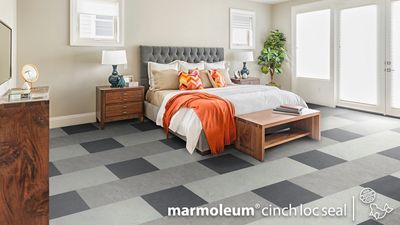 The new Marmoleum Cinch Loc Seal collection with waterproof core, provides a beautiful, healthy, easy-to-clean floor that is kid-proof, pet-proof, and waterproof! Available in a variety of colors and 2 versatile formats (12”x12” squares and 12”x36” planks) Marmoleum Cinch Loc Seal easily mixes and matches, allowing your imagination to soar with design possibilities. The new Marmoleum Cinch Loc Seal collection with waterproof core, provides a beautiful, healthy, easy-to-clean floor that is kid-proof, pet-proof, and waterproof! Available in a variety of colors and 2 versatile formats (12”x12” squares and 12”x36” planks) Marmoleum Cinch Loc Seal easily mixes and matches, allowing your imagination to soar with design possibilities.